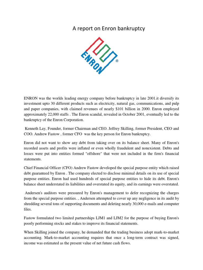 Enron Scandal The Fall Of A Wall Street Darling Enron Mark To Market Accounting