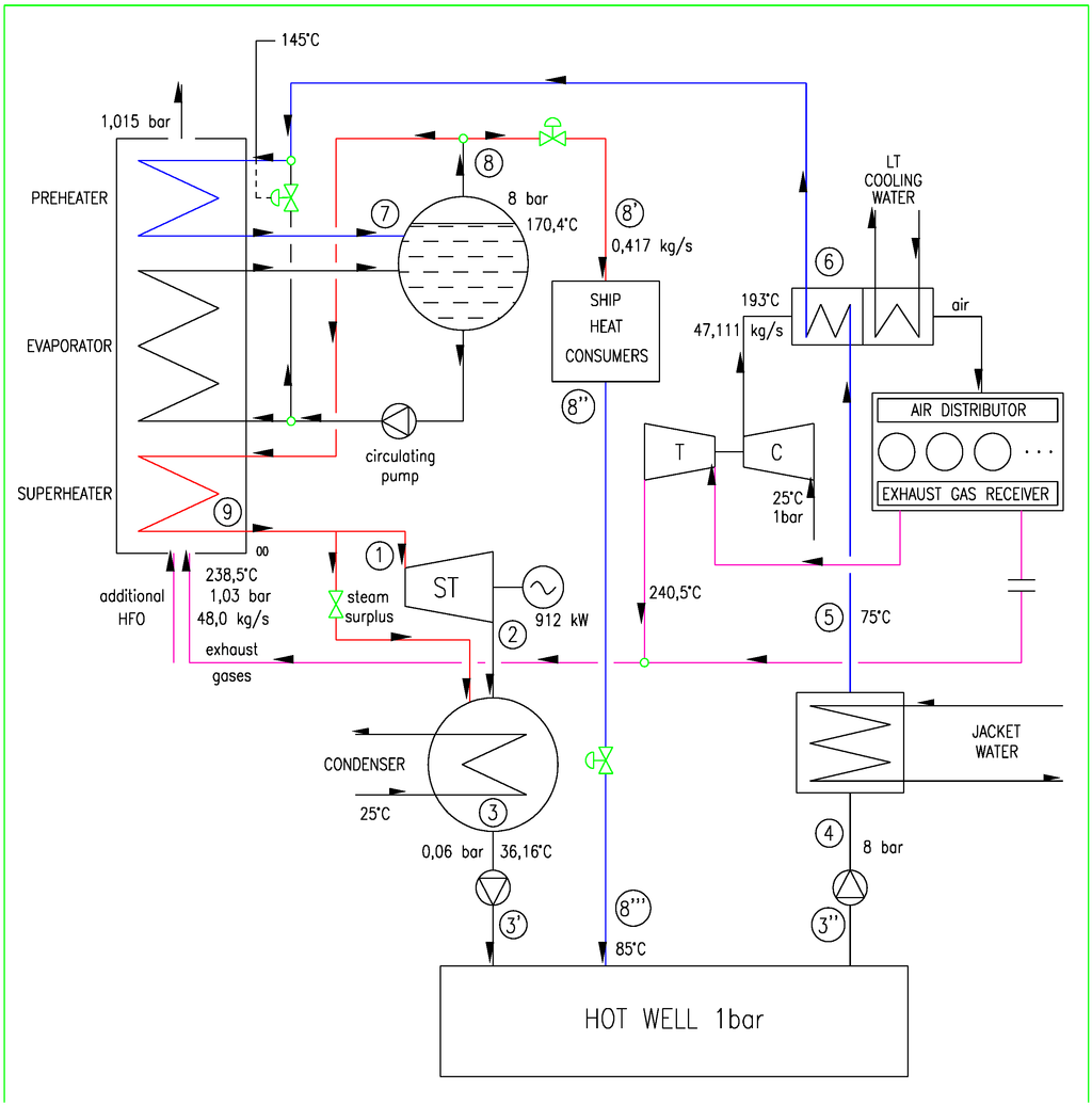 Energies Free Full Text Thermodynamic Analysis Of A Ship Power Plant Operating With Waste Heat Recovery Through Combined Heat And Power Production Html