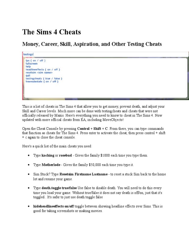 346446695 The Sims 4 Cheats Copy Docx Cheating In Video Games Multiple Births